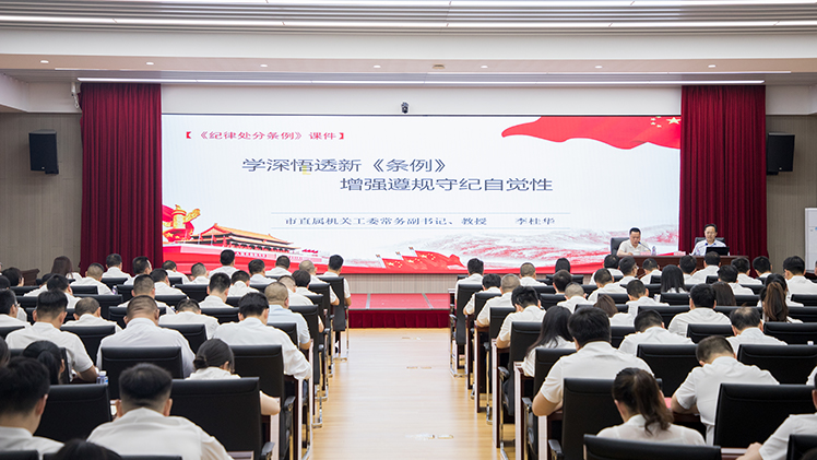 5月16日下午,市城運(yùn)集團(tuán)黨委理論學(xué)習(xí)中心組2024年第六次集中(擴(kuò)大)學(xué)習(xí)暨黨紀(jì)學(xué)習(xí)教育專題黨課會(huì)議召開。會(huì)議特邀市直屬機(jī)關(guān)工委常務(wù)副書記、教授李桂華以“學(xué)深悟透新《條例》 增強(qiáng)遵規(guī)守紀(jì)自覺性”為題,圍繞《中國(guó)共產(chǎn)黨紀(jì)律處分條例》解讀作專題授課。集團(tuán)黨委副書記凌峰云主持會(huì)議,集團(tuán)在家班子成員及市管干部、集團(tuán)中層干部、各黨支部書記、機(jī)關(guān)干部職工等參加學(xué)習(xí)。