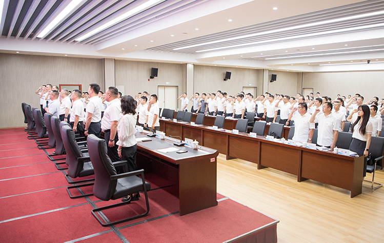 錚錚誓言喚醒入黨初心。在集團黨委書記、董事長劉險峰的帶領下,全體新老黨員面向黨旗、高舉右拳,用莊嚴承諾表達對黨的忠誠和為共產主義事業(yè)奮斗終身的決心。
