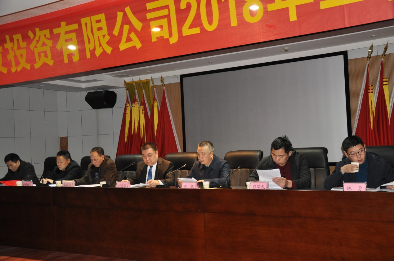 在會(huì)上,諶曦總經(jīng)理匯報(bào)了公司2017年目標(biāo)任務(wù)完成情況及所做的主要工作,肯定了過去的一年工作成績,分析了公司當(dāng)前存在的問題。同時(shí),對(duì)2018年工作進(jìn)行了總體規(guī)劃,從交通項(xiàng)目、民生項(xiàng)目、經(jīng)營項(xiàng)目、資本運(yùn)營、子公司經(jīng)營發(fā)展和融資計(jì)劃方面明確了今年主要工作目標(biāo),指出了實(shí)現(xiàn)目標(biāo)的主要工作措施。隨后,各子公司、項(xiàng)管部負(fù)責(zé)人向董事長分別遞交了經(jīng)營責(zé)任狀、廉潔責(zé)任狀、安全責(zé)任狀,公司部門負(fù)責(zé)人向董事長遞交了廉潔責(zé)任狀。副總經(jīng)理凌峰云宣讀了公司先進(jìn)集體、優(yōu)秀員工、先進(jìn)工會(huì)小組和工會(huì)積極分子的表彰通報(bào),并對(duì)受表彰的單位和個(gè)人進(jìn)行了頒獎(jiǎng)。