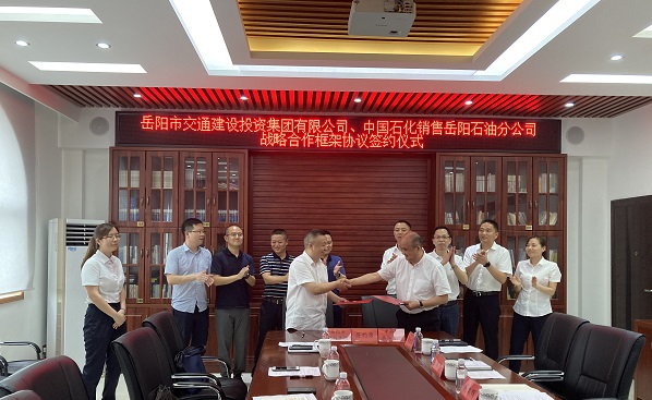 6月9日下午,市交投集團(tuán)與中石化銷售岳陽石油分公司戰(zhàn)略合作框架協(xié)議簽約儀式圓滿舉行。兩家公司注資成立合資公司,將在岳陽地區(qū)投資建設(shè)加油站及其配套產(chǎn)業(yè)。