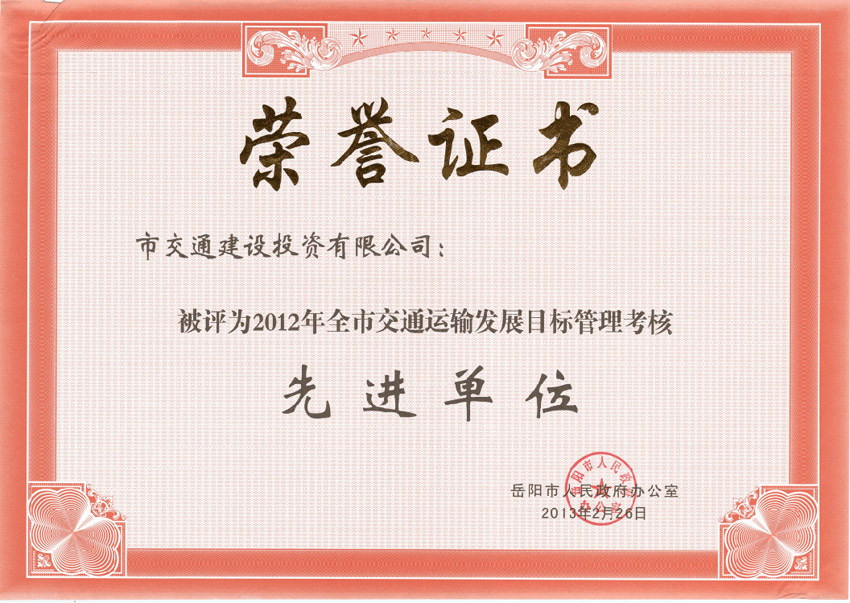 2012年全市交通運(yùn)輸發(fā)展目標(biāo)管理考核先進(jìn)單位