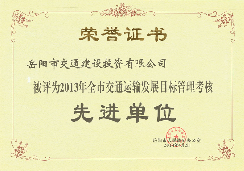 2013年度全市交通運輸發(fā)展目標管理考核先進單位